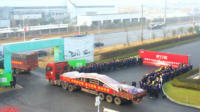 2月3日,農(nóng)歷正月初六,上午8時8分,湖南特力液壓有限公司(以下簡稱“特力液壓”)舉行2025年新春開門紅活動暨發(fā)車儀式。8臺車輛長龍胸帶紅花,滿載著788支、總金額322.8萬元的油缸發(fā)往長沙、漢壽和上海。